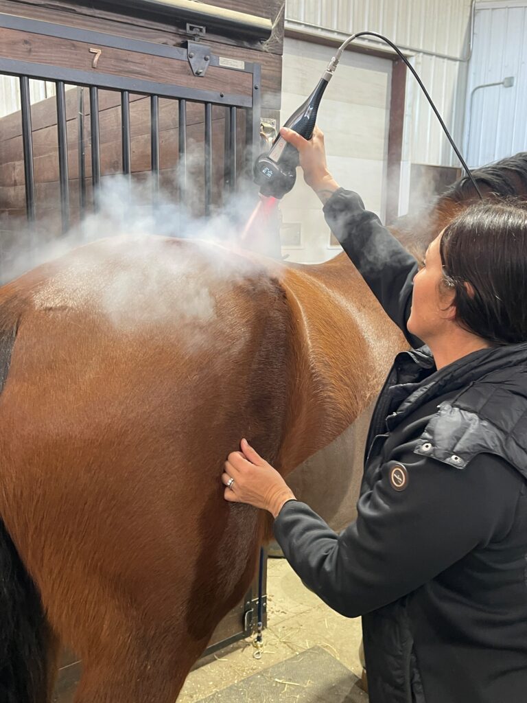 Localized cryotherapy delivers controlled cold to targeted areas to help manage inflammation, support soft‑tissue recovery, and improve post‑work comfort. Sessions are designed around your horse’s workload, movement patterns, and tissue needs, offering a precise, non‑invasive way to support performance and recovery.